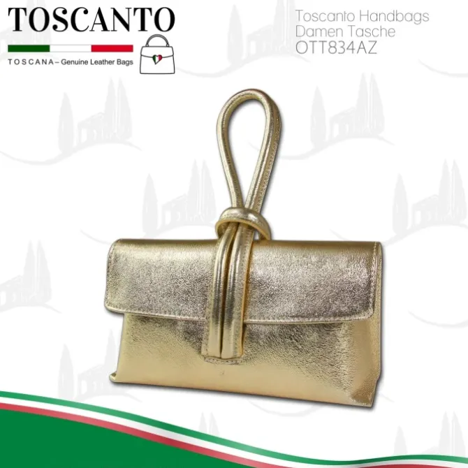 Toscanto Abendtasche, Umhängetasche aus Leder in gold