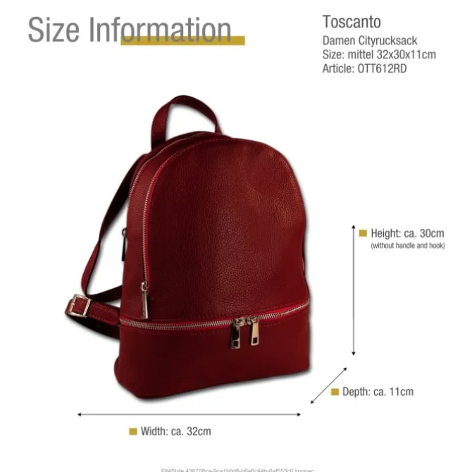 Diese trendige Damen Tasche von Toscanto aus der Toscanto Backpacks Kollektion ist ein cooles Accessoire und ein echter Hingucker. Die dunkelrote Tasche ist der ideale Begleiter für den eleganten Abend.