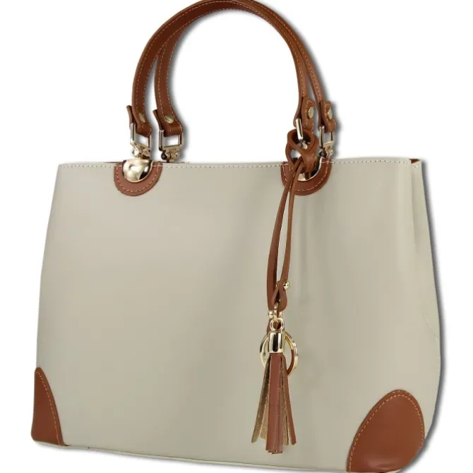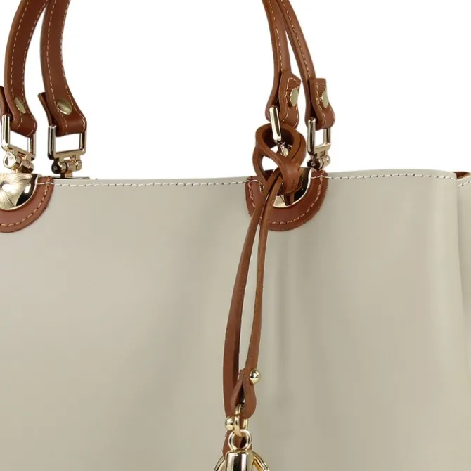 Toscanto Handtasche, Umhängetasche aus Leder in beige, tan