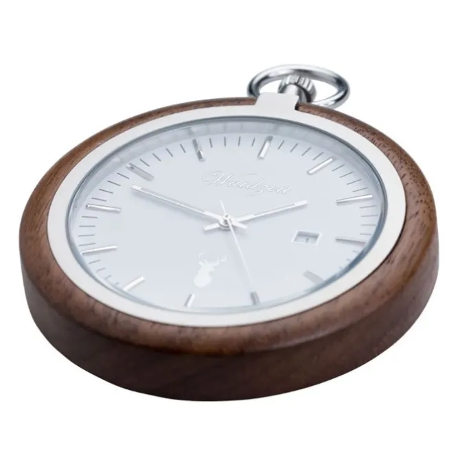 Waidzeit Herren Taschenuhr Edelstahl Walnuß dunkelbraun mit Uhrenkette UWATW01